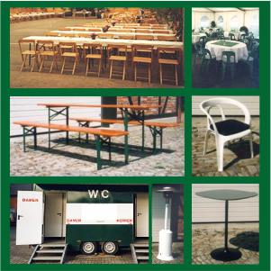 Verleih von Stühlen, Tischen, Stehtischen, ganzen Garnituren, Heizstrahlern und Toilettenwagen für Feste, Sportevents, Jubiläen, Geburtstage, Firmenveranstaltungen ...